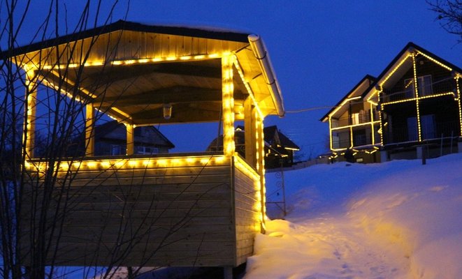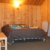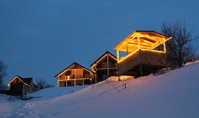 Номерной фонд: люксы и стандарты с удобствами в номерах и душевыми кабинами. Материал построек утепленный сайдингом брус и оцилиндрованное дерево, газовое отопление, теплые водяные полы, каскадная система септиков, резервный газовый электрогенератор.