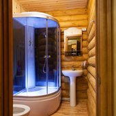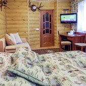 На территории отеля «Река Чаек» расположены комфортные коттеджи с современной сантехникой.