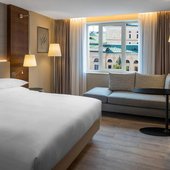 Все номера оформлены в естественных тонах. В числе удобств телевизор с плоским экраном, бесплатные принадлежности для чая/кофе и сейф. Из некоторых номеров открывается вид на Кремль или площадь. Собственная ванная комната отделана мрамором и укомплектована бесплатными туалетно-косметическими принадлежностями. В отеле осуществляется круглосуточная доставка еды и напитков в номер.