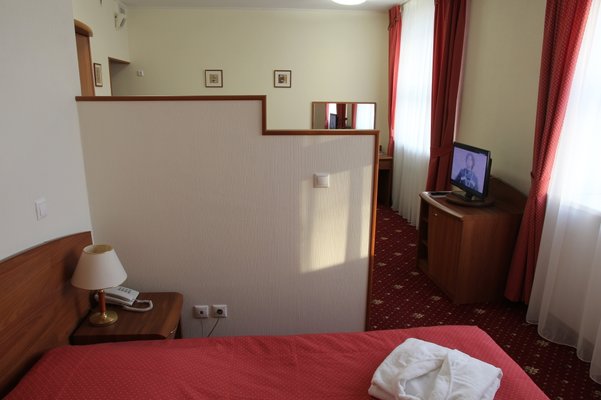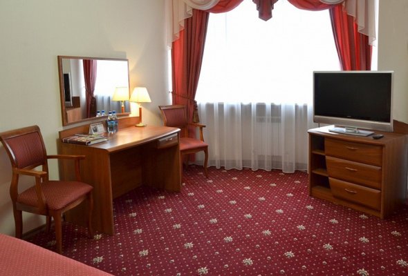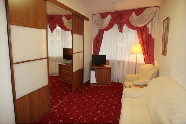 Отель предлагает 90 номеров первой и высшей категории: «Стандарт», «Улучшенный стандарт», «Студия» и «Люкс». Интерьер гостиницы выполнен в классическом стиле. Номера оборудованы всем необходимым для комфортного пребывания: удобная мебель, жк-телевизор, холодильник, сейф. В номерах повышенной категории Вам будут предоставлены мини-бар, халаты и тапочки. Отель расположен в центре города. Для гостей в отеле работает ресторан «Суаре».