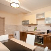 Просторная и современная кухня оснащена всем необходимым для приготовления пищи. В шаговой доступности находятся продуктовые магазины, рестораны и кафе.