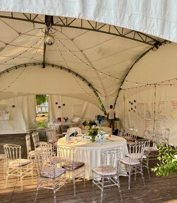 Белоснежный шатер, способный вместить до 60 человек — это идеальное место для незабываемых свадеб, ярких выпускных, стильных корпоративов и торжественных юбилеев, где каждый момент станет поистине особенным. Погрузитесь в атмосферу утонченности и комфорта, наслаждаясь праздником в элегантном окружении на протяжении 6 часов и более.