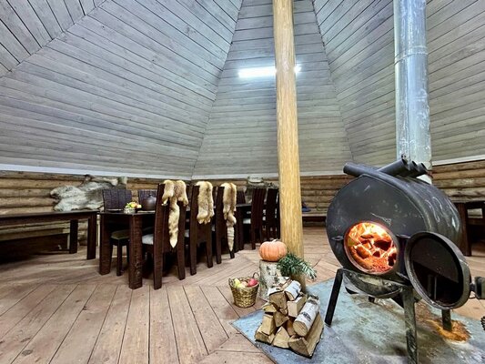 Юрта — уникальное место для вашей свадьбы, выпускного, корпоративного мероприятия или юбилея. С комфортом разместив до 20 человек, юрта создаст атмосферу уединения и тепла. Минимальное время составляет 6 часов, что позволяет вам наслаждаться праздником в непринужденной обстановке, окруженной живописной природой.
