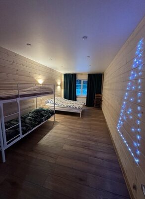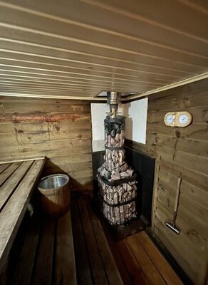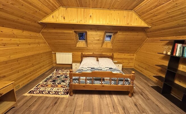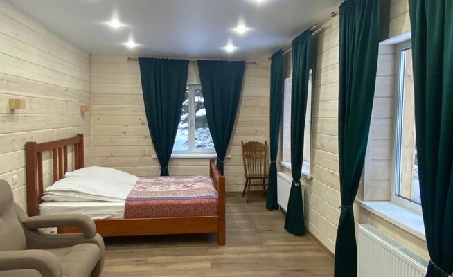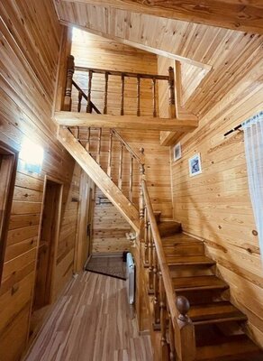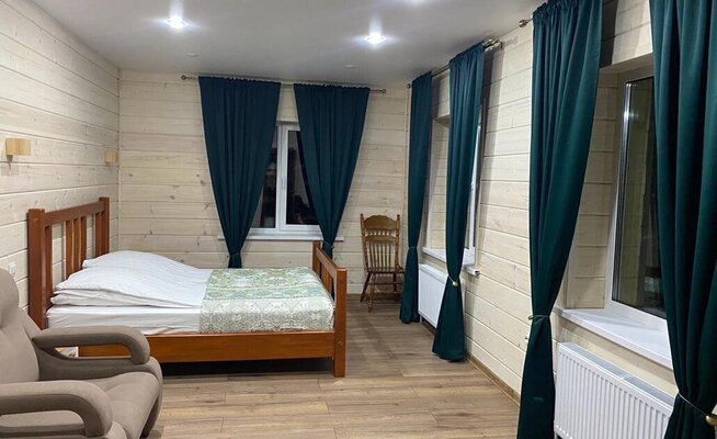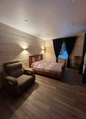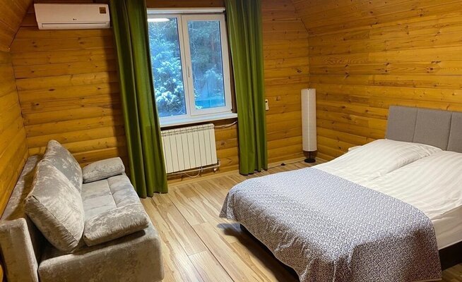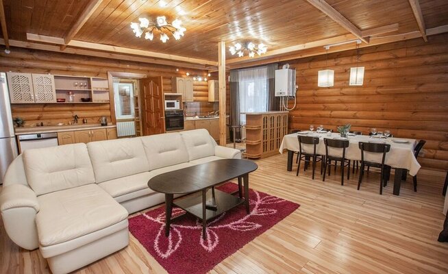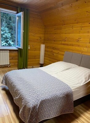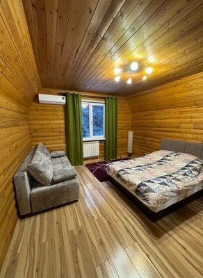 В вашем распоряжении просторный дом с пятью спальнями, уютным гостиным залом, Wi-Fi, караоке и доступом к стриминговым сервисам КиноПоиск и IVI. Для вашего комфорта предусмотрена русская баня на дровах, большая беседка на 12 человек и парковка на 10 автомобилей. В доме есть все необходимое для жизни: полная комплектация посуды и кухонной утвари, свежее постельное белье и полотенца, а также удобная обувь для прогулок — тапочки, кроксы и резиновые сапоги. Современная бытовая техника, включая посудомоечную и стиральную машины, духовку, кондиционер и систему фильтрации воды, сделает ваше пребывание еще более комфортным.