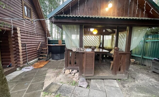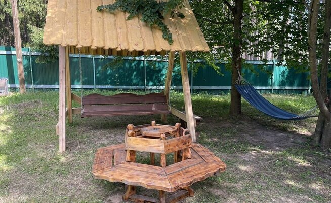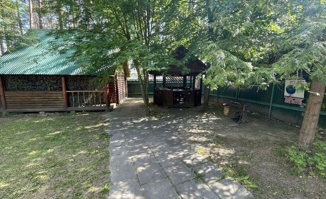 На территории усадьбы рядом с баней находится комфортная беседка, способная разместить до двенадцати человек. Это идеальное место для того, чтобы насладиться отдыхом на свежем воздухе и провести время в приятной компании.