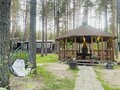 Беседка оснащена музыкальным оборудованием, что создает приятную атмосферу для отдыха. Она оборудована большим мангалом с решетками и шампурами, что позволяет гостям удобно организовать приготовление блюд на открытом огне в комфортных условиях.