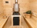 Внутри — атмосфера настоящей русской бани, где можно насладиться паром и теплом в компании близких. Здесь есть все необходимое: парная, а также небольшое моечное отделение с удобными кранами горячей и холодной воды. Для удобства предусмотрены ковши, тазики и другие банные аксессуары.