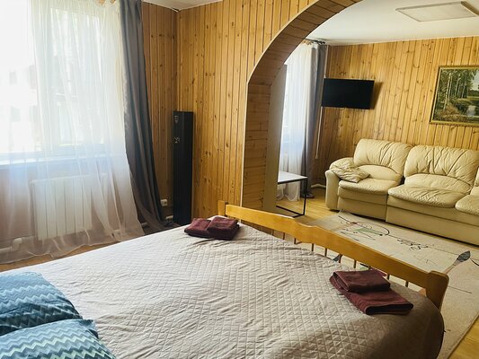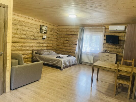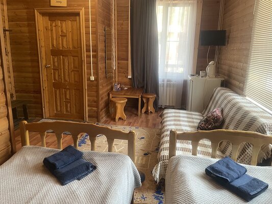 Большая баня на туристической базе «Уста» предлагает своим гостям просторную парилку с печью, а также уютную комнату отдыха, оборудованную столом, диваном, лавкой и телевизором. В комнате отдыха имеется чайник, травяной чай и стаканы для удобства гостей.