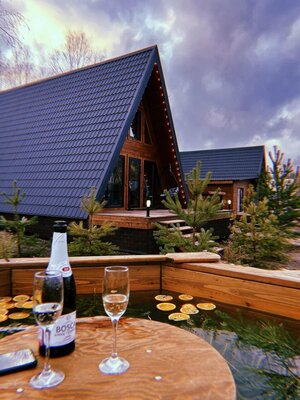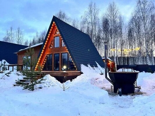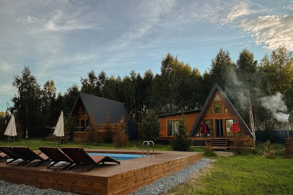 Каждый домик обладает приватной зоной, где располагается чан с мини-бассейном, идеальный для летнего отдыха. Вы также можете попариться в уютной бане или расслабиться в беседке на свежем воздухе.