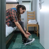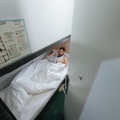 Двухместный номер-капсула с 2 отдельными спальными местами на двухъярусной кровати, без окна
