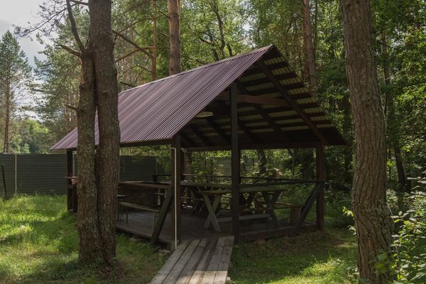 7 оборудованных беседок-барбекю. Вместимость: от 7 до 30 человек. Стол, скамьи или стулья, мангал, решетка.