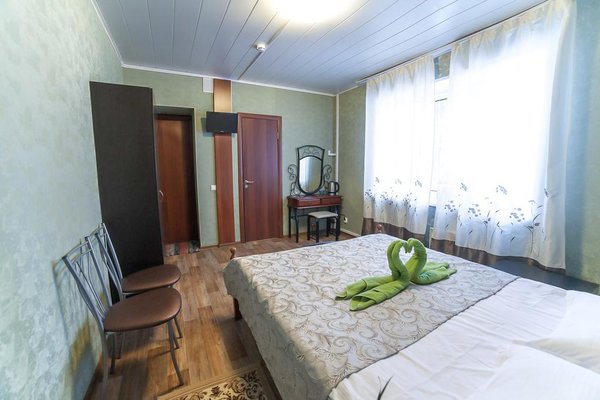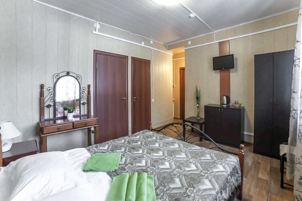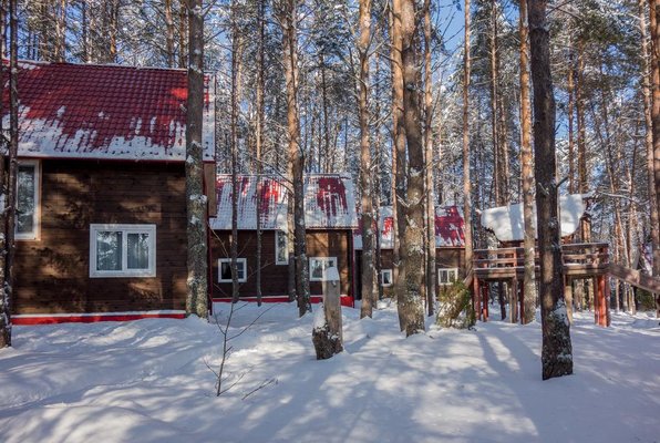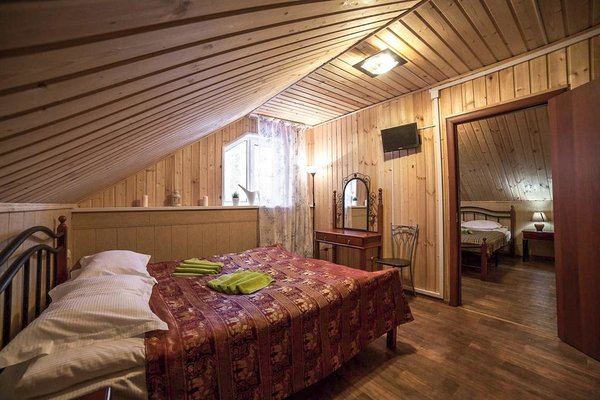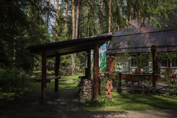 База отдыха занимает небольшую благоустроенную территорию с резными деревянными и глиняными скульптурами сказочных персонажей, ухоженными дорожками и беседками, на которой разместился эко-городок, включающий в себя 2-х этажные деревянные коттеджи, 3-х этажный коттедж и русскую избу. В целом, номерной фонд рассчитан на единовременное размещение 120 человек. Гостей ожидают 2-х, 3-х и 4-х местные номера категории «Стандарт», оснащенные санузлом с душевыми кабинами, спутниковым ТВ, необходимой бытовой техникой.