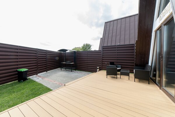У каждого домика своя огороженная территория с мангальной зоной.