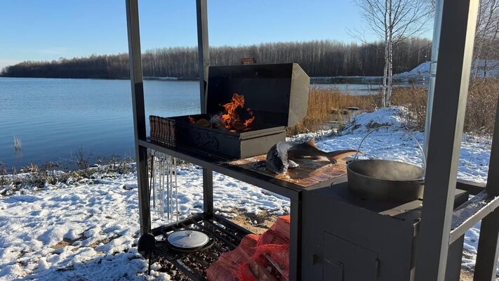 Беседка на берегу тихого озера, рядом костровая и мангальная зоны. Размером 4*12 метров. Вместимость в формате застолья до 42 пос. мест, формат фуршета до 50 чел. Для уютных посиделок, романтических вечеров, небольших корпоративов на природе, семейных мероприятий или выходных в компании друзей.