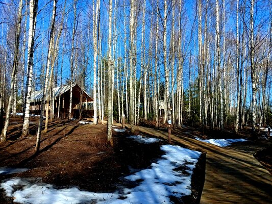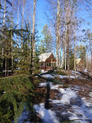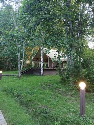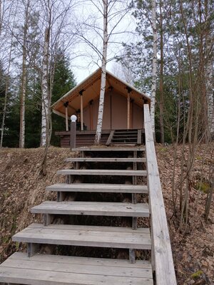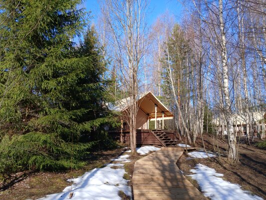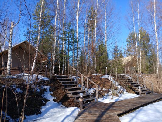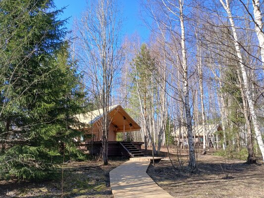 - территорию глэмпинга окружают леса, поля и река, чтобы избежать неприятных ситуаций, держите питомца на поводке или шлейке;