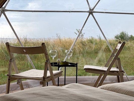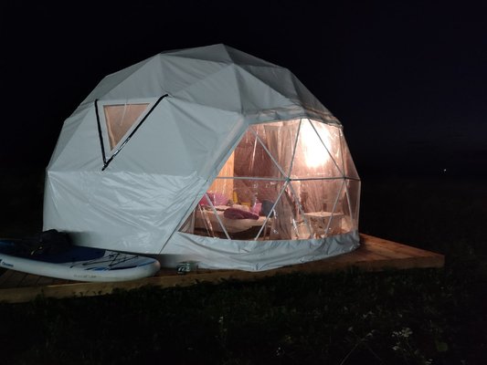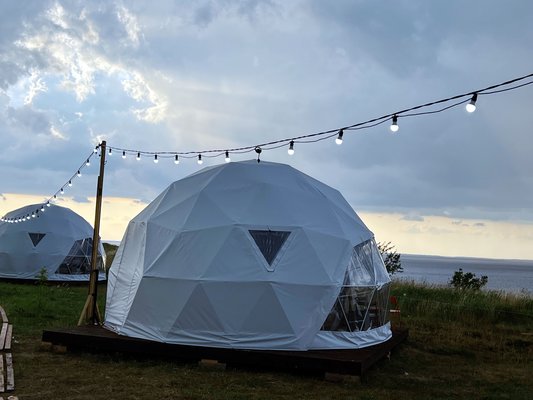 Вас ждёт проживание в купольных шатрах, из которых открывается панорамный вид на озеро, позволяя наслаждаться рассветами и закатами, не вставая с постели.