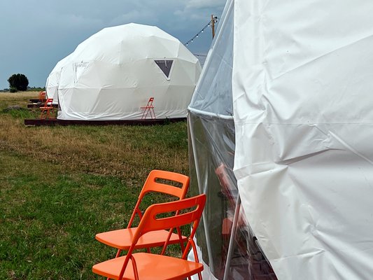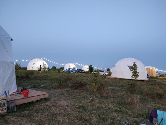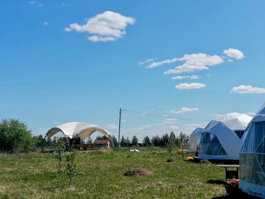 Места оборудованы столом, стульями, зонтом. Пользование санитарной зоной с туалетами и душами на территории глэмпинга.