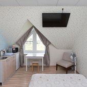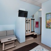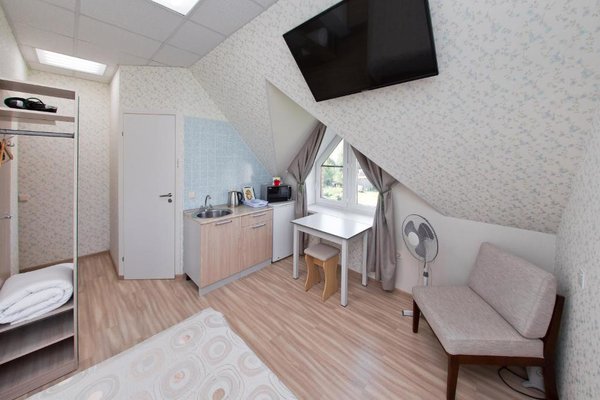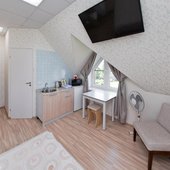 Гостевой дом расположен в тихом месте вблизи Великого Новгорода, от центра города всего пять километров. К удобствам гостей на первом этаже гостевого дома "Три клена" находятся общие зоны, такие как: просторная гостиная с обеденной зоной, где для наших гостей всегда доступны чай и кофе; полностью оборудованная кухня со всем необходимым для приготовления любимых блюд; а также сауна, где наши гости могут согреться и расслабиться. Раздельные общие ванные комнаты есть на каждом этаже.