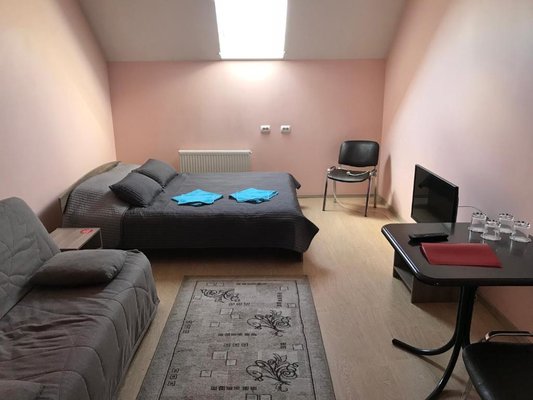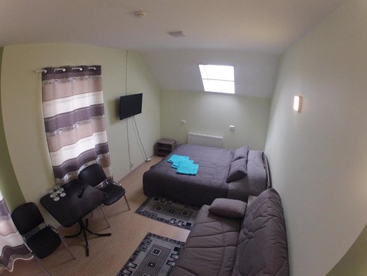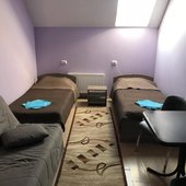 Мотель состоит из уютных номеров вместимостью от 1 до 3 гостей, за чистотой которых тщательно следит персонал. Каждый номер оборудован всем необходимым для комфортного пребывания: кровать, диван, шкаф, телевизор, стол, стулья, полотенца и др. Санузел ( душ, туалет и т.д) находится на этаже.