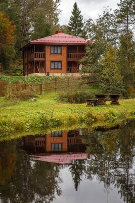 Кроме того, на территории базы расположилось кафе, русская баня и пункт проката инвентаря. Здесь есть все, чтобы, вне зависимости от времени года, принять до 40 гостей.