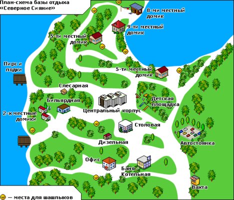 На 385-м километре от Москвы по трассе Москвы – С. Петербург (315 км от Петербурга) будет поворот на Боровичи, там же установлен первый указатель поворота на «Северное сияние». Надо свернуть с трассы, и через 5 км, сразу после пересечения речки Валдайки, будет грунтовая дорога влево, и указатели баз отдыха. Надо свернуть туда и, держась правее, ехать 3 км по хорошей лесной дороге, которая и приведет вас прямо к охраняемой проходной пансионата «Северное Сияние».