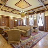 Территория дома отдыха составляет 40 гектар и занимает полуостров, с трех сторон омываемый водами озера Ужин. Можно свободно совершать прогулки вдоль берега и в лесу, который изобилует грибами и ягодами. Вся территория превосходно обустроена, ухожена.