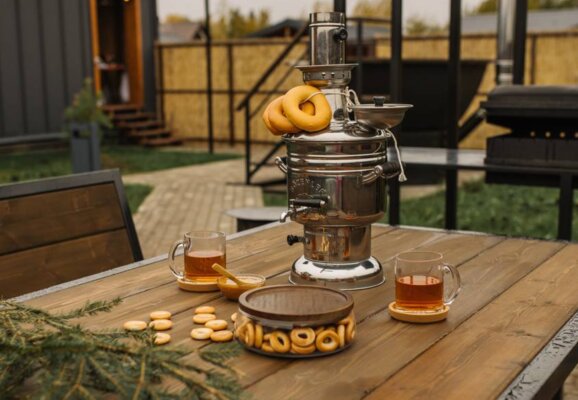 - Самоварное чаепитие (самовар / листовой чай в ассортименте / сушки/мед /варенье) — 1000 ₽.