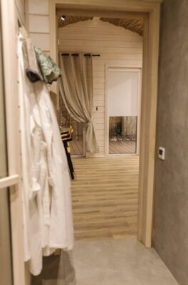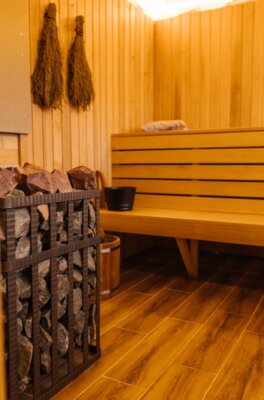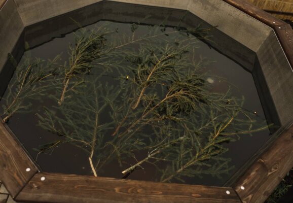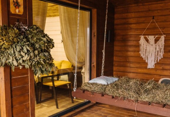 Современная русская баня на дровах (54м2) с просторной и расслабляющей комнатой отдыха, и конечно же с горячим сибирским чаном на травах (предложение для настоящих ценителей парных традиций).