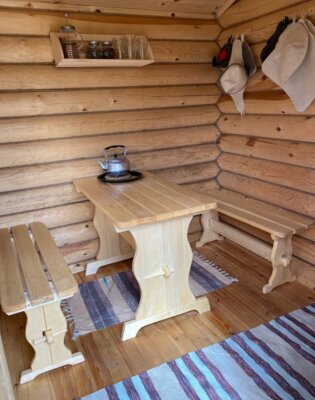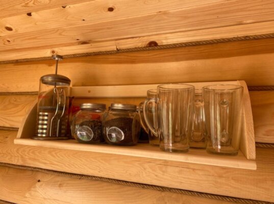 После парения можно заварить травяной чай (в ассортименте) и насладиться им сидя на панорамной террасе вокруг бани.