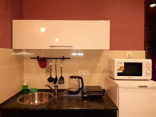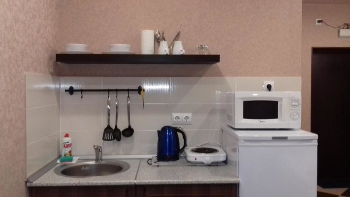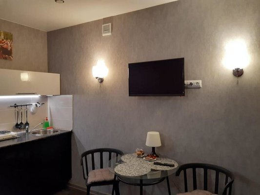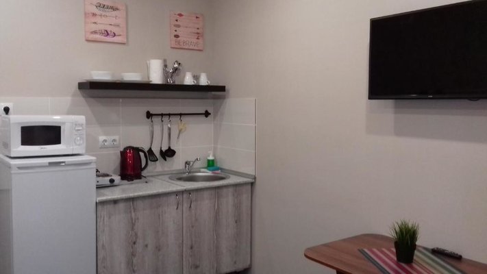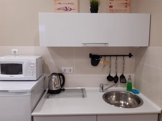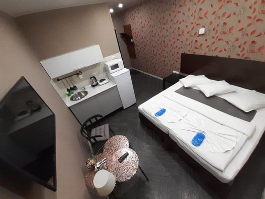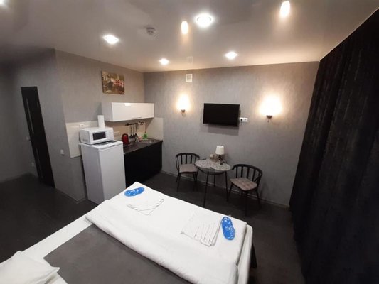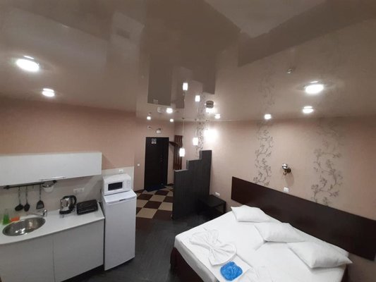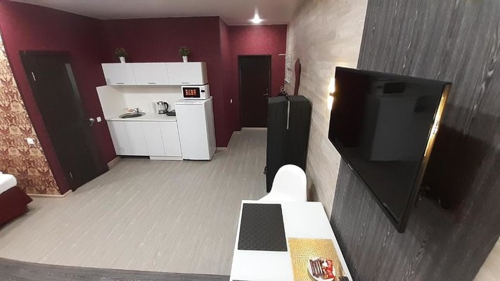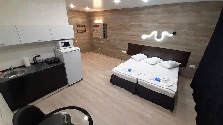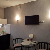 В каждом номере есть собственная кухня с бытовой техникой, варочной поверхностью и посудой. Здесь удобно готовить и хранить инвентарь. В шаговой доступности есть магазины и супермаркеты, где продают свежие продукты питания. Разнообразить рацион помогут кафе, бары и рестораны, находящиеся в нескольких минутах езды от отеля.