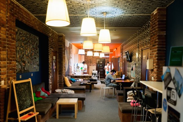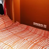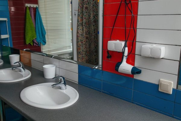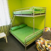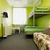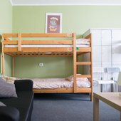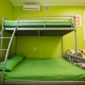Номера хостела выполнены в ярких тонах и оснащены удобными двухъярусными кроватями, общей ванной комнатой и современной техникой.