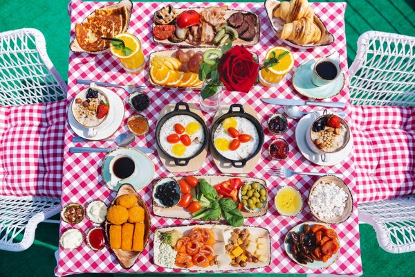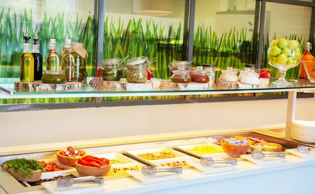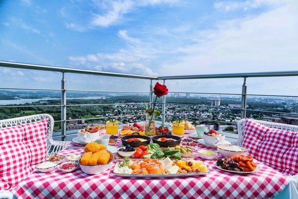 На территории открыт ресторан, который специализируется на блюдах русской и европейской кухни.