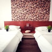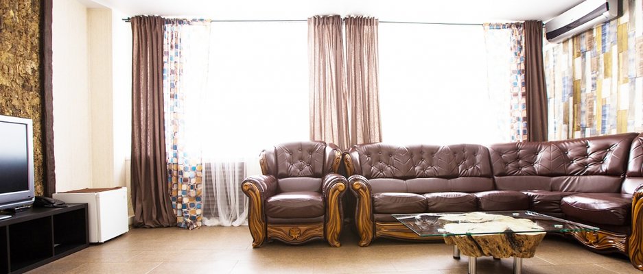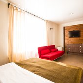 Гости могут расположиться в стильных комфортабельных номерах различной ценовой категории - от «Стандарта» до «Люкс». В каждом из них есть собственная ванная комната, телевизор, удобное спальное место, качественная мебель с отделкой из дерева и приятное оформление.