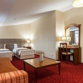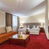 К размещению гостей представлены комфортные номера с мини-баром. Все они имеют современное оформление и оборудованы удобными спальными местами, качественной мебелью и современной техникой. Каждая категория включает в себя собственную ванную комнату.