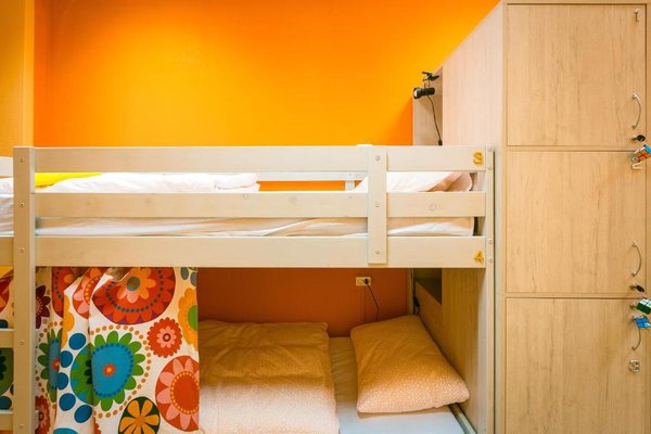 Интерьер номеров хостела оформлен в веселых и ярких цветах, что всегда будет поднимать настроение своих гостей. Уборка в номерах проводится каждый день. Для хранения личных вещей есть запирающиеся шкафчики.
