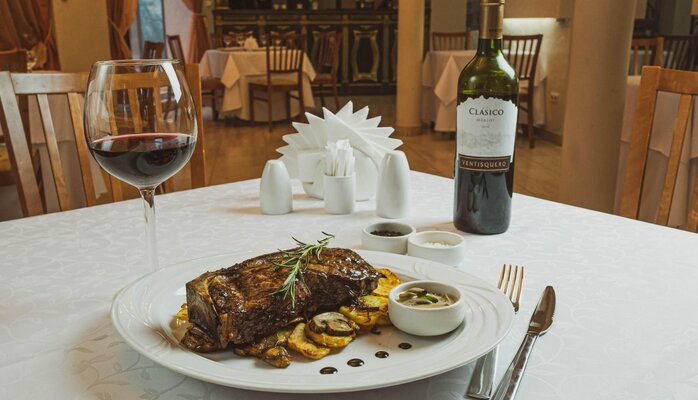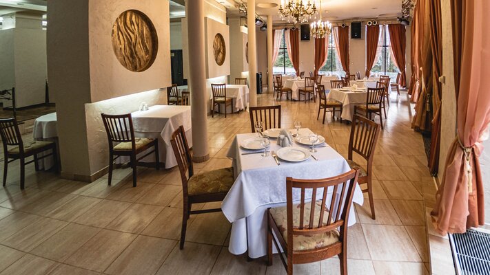 Ресторан отеля предлагает разнообразное меню с вкусным завтраком и блюдами европейской и русской кухни.