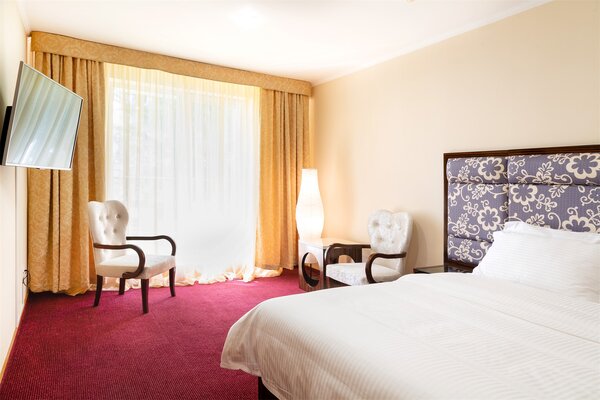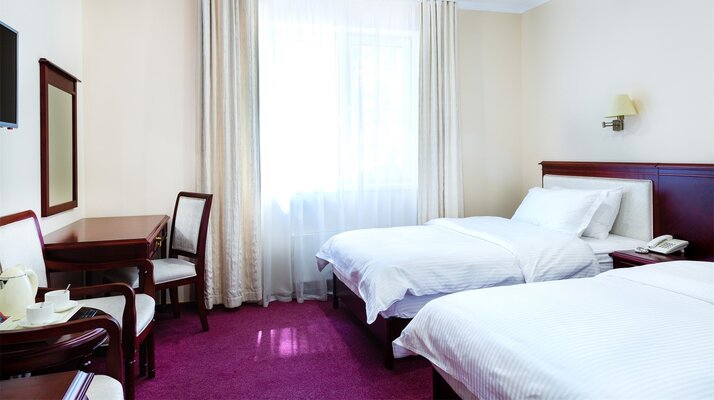 В отеле гостям предлагается уютное размещение в номерах с ортопедическими матрасами и собственными ванными комнатами.