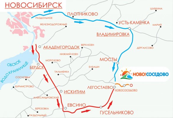 Можно добраться по недавно отремонтированной дороге, ведущей в сторону Искитима, ориентир Линево, дорога через Ургун на Гусельниково, поворот на Новососедово.