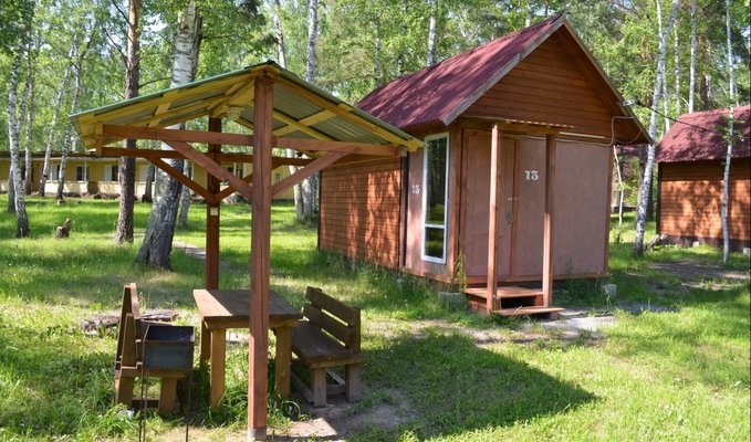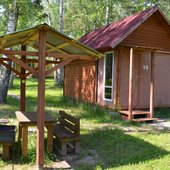 недалеко от города, отличная территория, чистый воздух, невысокие цены, уютные домики, в цену включены завтраки и парковка.
