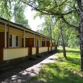На базе отдыха можно заселить как в круглогодичные корпуса, так и в летние домики. Помимо этого в нескольких метрах находятся коттеджи.