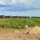 На территорию комплекса проведена вода из скважины, имеются умывальники и душевые кабины. Территория комплекса огорожена и охраняется. Имеется возможность для занятий игровыми видами спорта.