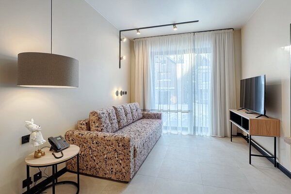 Игровая оборудована детской мебелью, мягкими игрушки, машинками, развивающими играми, познавательными книгами и канцелярскими принадлежностями. Наслаждайтесь отдыхом, не переживая за досуг ребёнка.