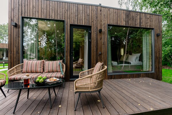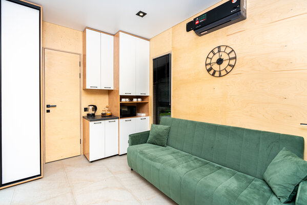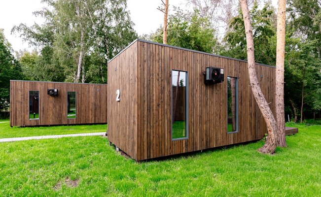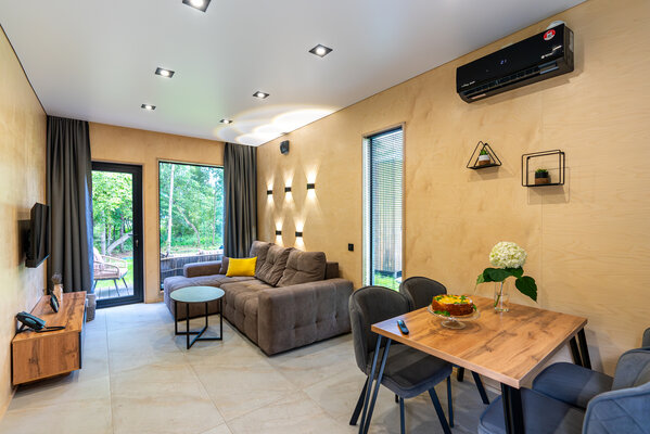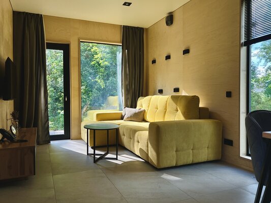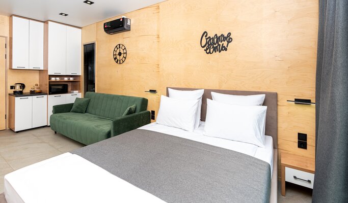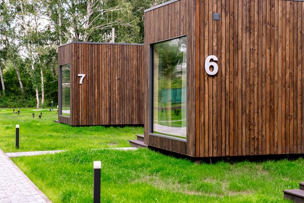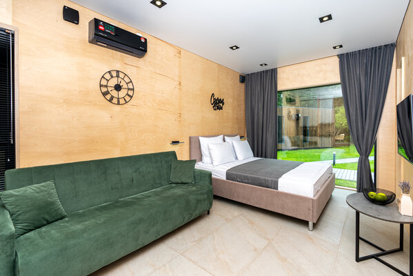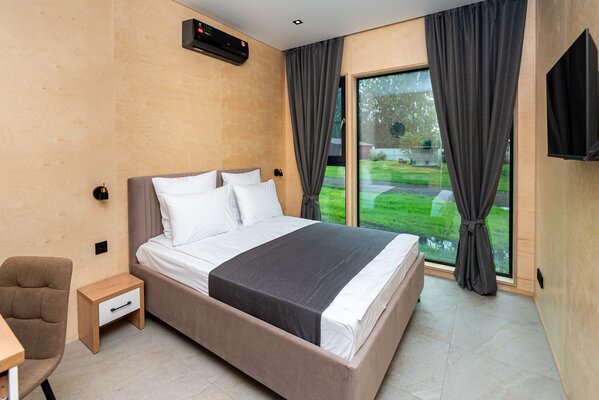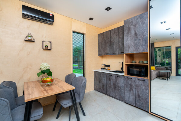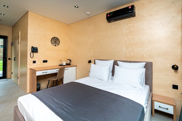 Все здания расположены на охраняемой закрытой территории, что обеспечивает комфорт и безопасность для гостей. Для проживания предлагаются различные форматы: отдельные виллы с приватной террасой, а также дома, разделенные на три или четыре номера с отдельными entrances. Номера оформлены в современном стиле, сочетающем минимализм и функциональность, и оснащены всей необходимой мебелью и техникой.