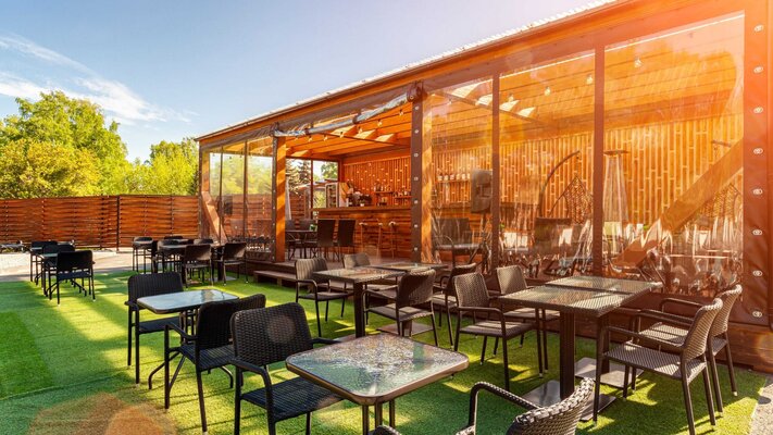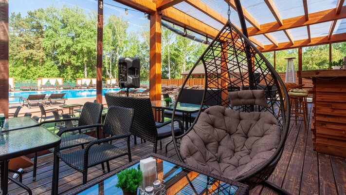 Летняя терраса с видом прямо на бассейн — особое пространство для наслаждения. Здесь можно расслабиться в жаркий летний день за освежающим коктейлем и насладиться большим выбором блюд из меню.