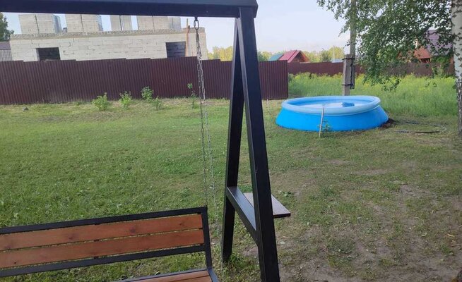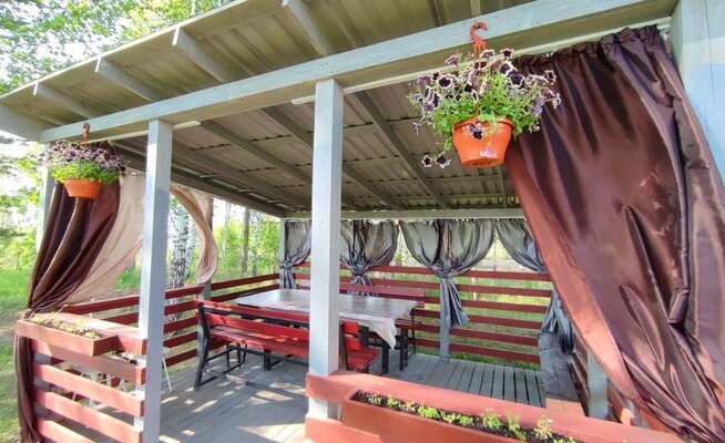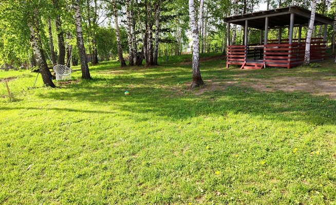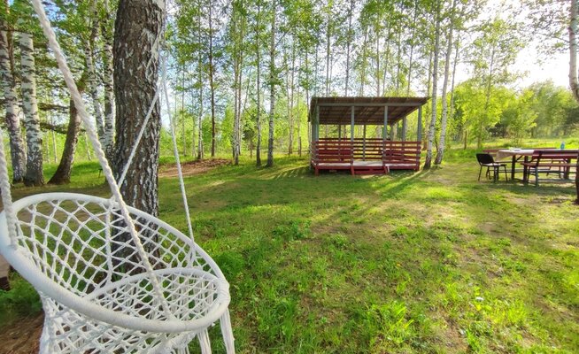 На территории гостевого дома есть просторный участок площадью 20 соток с лесом и газоном. Так же имеется уютная беседка со столом и скамейками, где вы сможете провести время на свежем воздухе, мангал для приготовления шашлыка и других блюд на углях и качели для приятного отдыха на природе.
