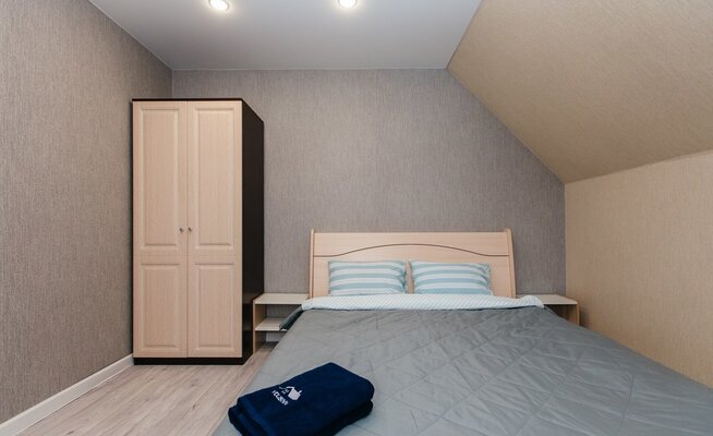 Внутри вас ждет 12 комфортабельных спальных мест с раскладными диванами и двуспальными кроватями с ортопедическими матрасами. Ванная комната с душем, полотенцами и туалетными принадлежностями.