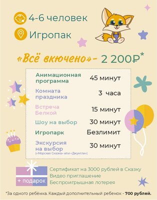 Для проживающих в загородном отеле "Сказка" и "Мечта":