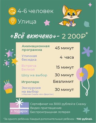 - Капитошка. Детям от 6 лет. Продолжительность: 300 ₽ / 30 мин