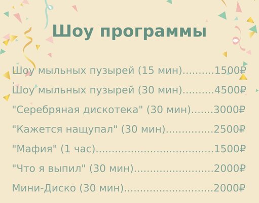Стоимость: 1200 ₽ / 1 час за 6 чел.