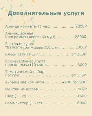 Дополнительные гости: 200 ₽ / час — 1 чел.